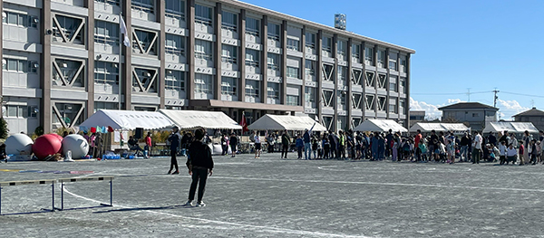 今年は、一番早いのが幼稚園で10月12日(日)、次の週(10月18日)が秋祭り、10月24日(日)が町民運動会(午前)と防災訓練(午後)、11月1日(土)が中学校、11月8日(土)小学校です。中学校の運動会では、生徒全員がテントの中で応援できるように各町内会からテントを借り集めて、15張り位規模で実施しています。