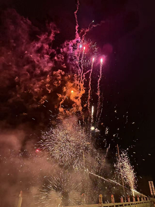 中国で1年の内一番長い連休となる為、帰省する人、旅行に行く人、家族と共に春節を楽しむ人、人それぞれ楽しみ方があるようです。中国では春節期間中3回盛大に打ち上げ花火や爆竹を行うようです。1回目は2月16日(除夕)、日本の大晦日、2回目は2月21日(財神を迎える)福をもたらす神をむかえるとされ、前日20日の夜23時位から打ち上げ花火、爆竹などが市内中で夜中の1時位まで盛り上がっていました。3回目は連休明けの2月24日始業日(开工大吉)开工(カイゴン):仕事や営業を始めること。大吉(ダイキチ):縁起が良いこと。「仕事を始めるにあたり、大きな幸運がありますように」という願いが込められているようです。